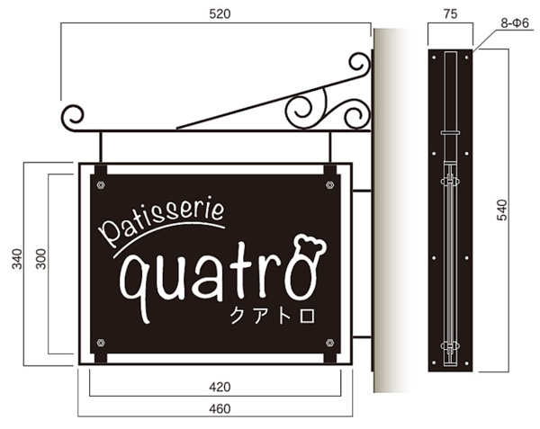 四角くおしゃれでフォーマルな洋風突き出しアイアンブレードサイン