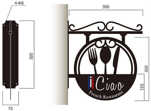 シルエットが主張する洋風突き出しアイアンブレードサイン