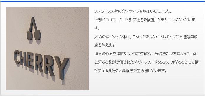 ![]() 重厚感のあるステンレス製の箱文字サインです。 |