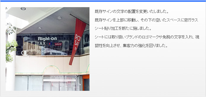 ![]() 小さい袖看板にはロゴを大きく入れるとバランスがとりやすいです。 |